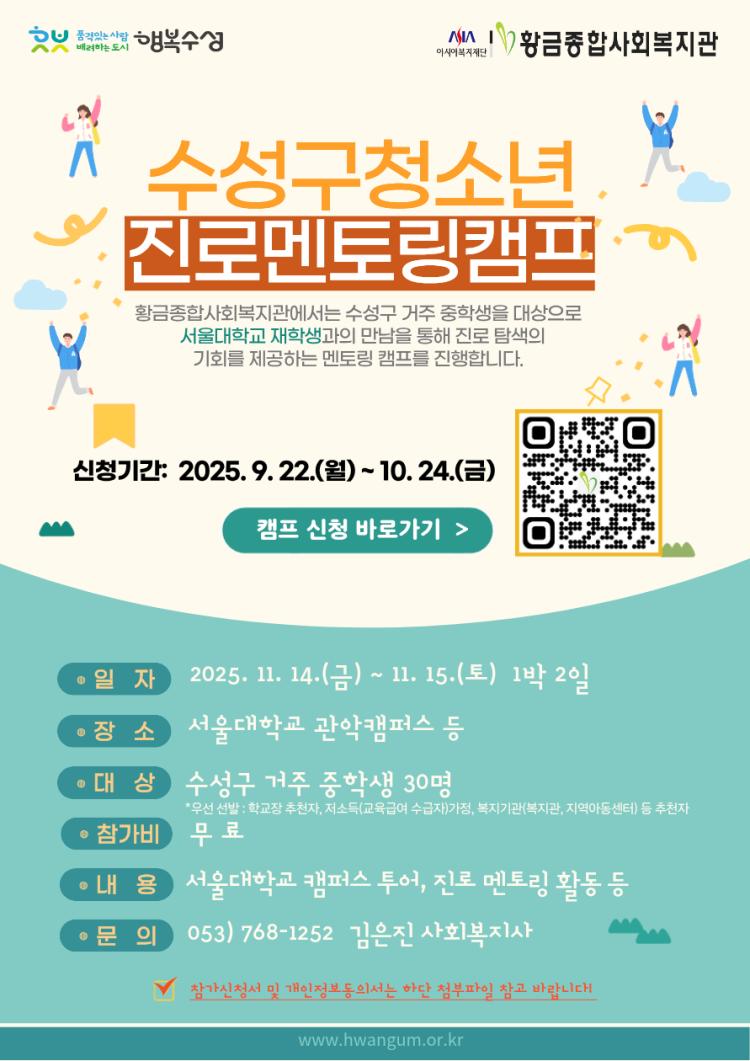 수성구 청소년 진로 멘토링 캠프 참가자 모집