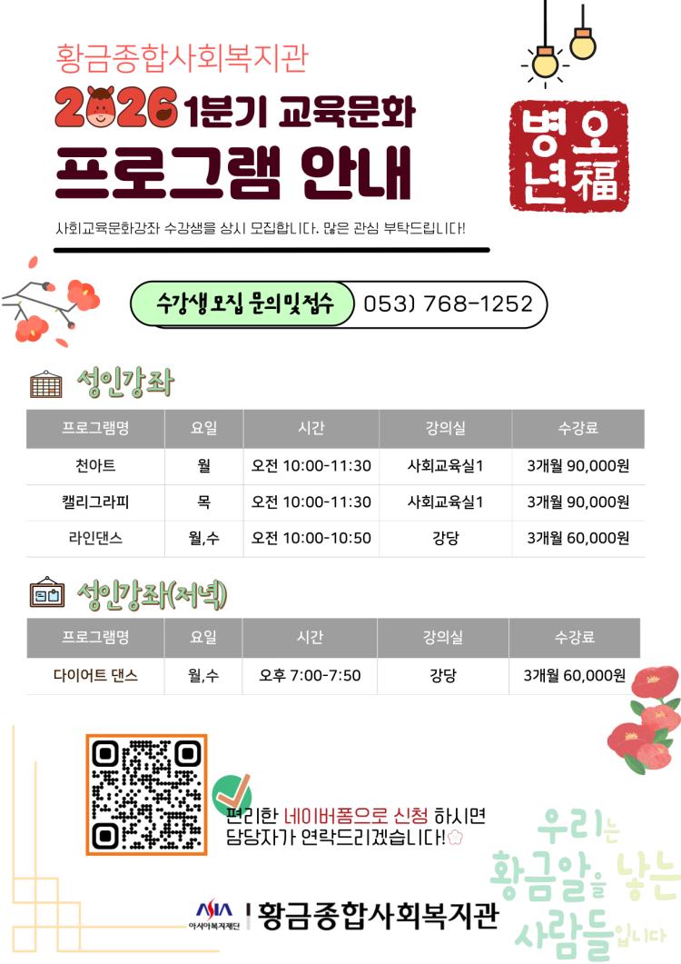 2026년 1분기 교육문화 성인강좌 프로그램 안내