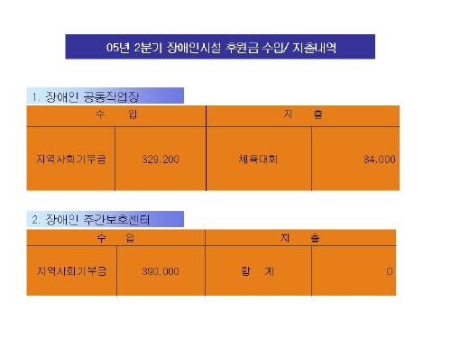 05년도 2분기 황금장애인시설 후원금 수입/지출내역
