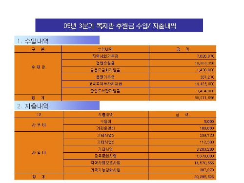 05년도 3분기 황금종합사회복지관 후원금 수입/지출내역