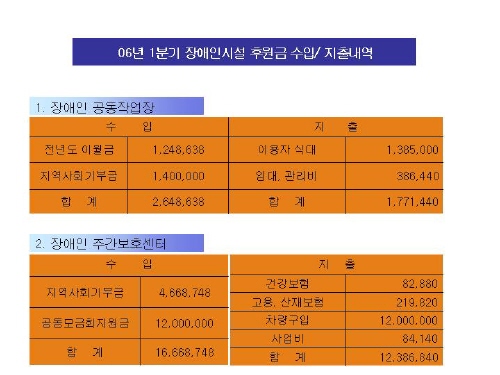 06년도 1분기 황금장애인시설 후원금 수입/지출내역