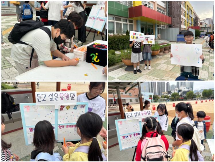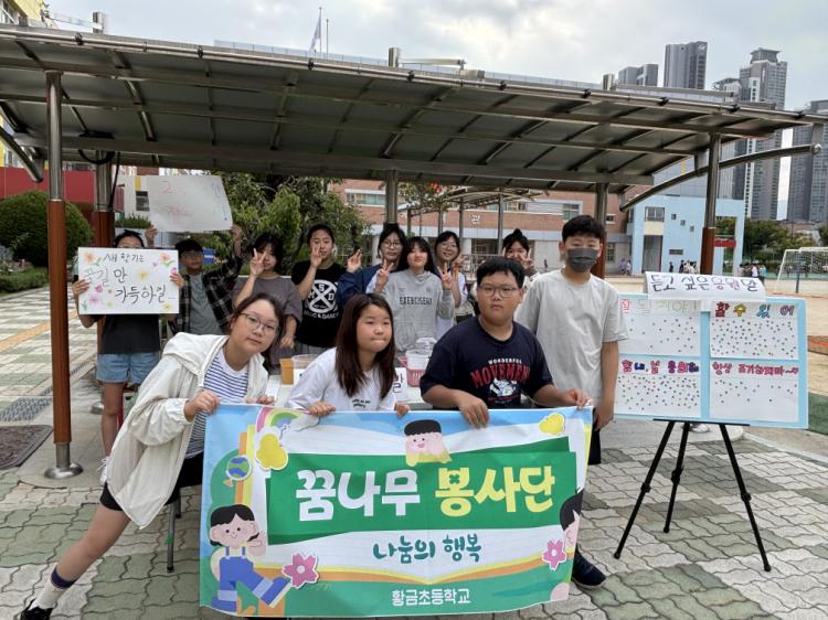<황금초등학교 꿈나무 봉사단 캠페인 “2학기를 부탁해”> 황금초등학교 꿈나무봉사단은 긴 여름방학을 마치고 2학기 개학을 맞아 친구들에게 응원과 새로운 목표를 다짐하는 등교 캠페인을 진행했습니다. 친구들의 등교 시간에 맞춰 자신이 만든 피켓을 들고 응원에 메시지를 나누며 캠페인을 시작한 봉사단은 처음 해보는 활동에 긴장했지만, 많은 친구들이 함께 참여해 자신의 다짐을 외치고 친구에게 응원의 말을 건네며 즐겁고 의미 있는 시간을 보냈습니다. 이 캠페인을 통해 아이들은 서로를 격려하며 한 뼘 더 성장하는 소중한 경험을 할 수 있었습니다